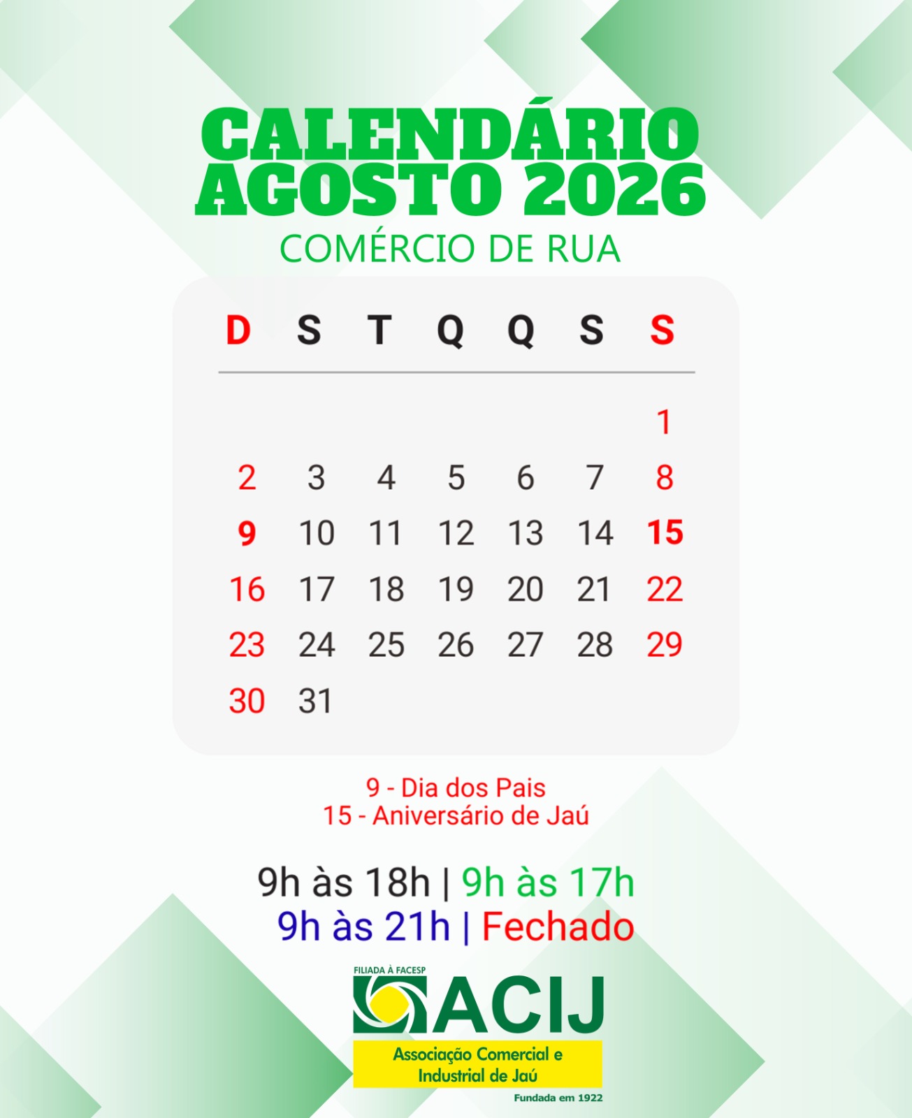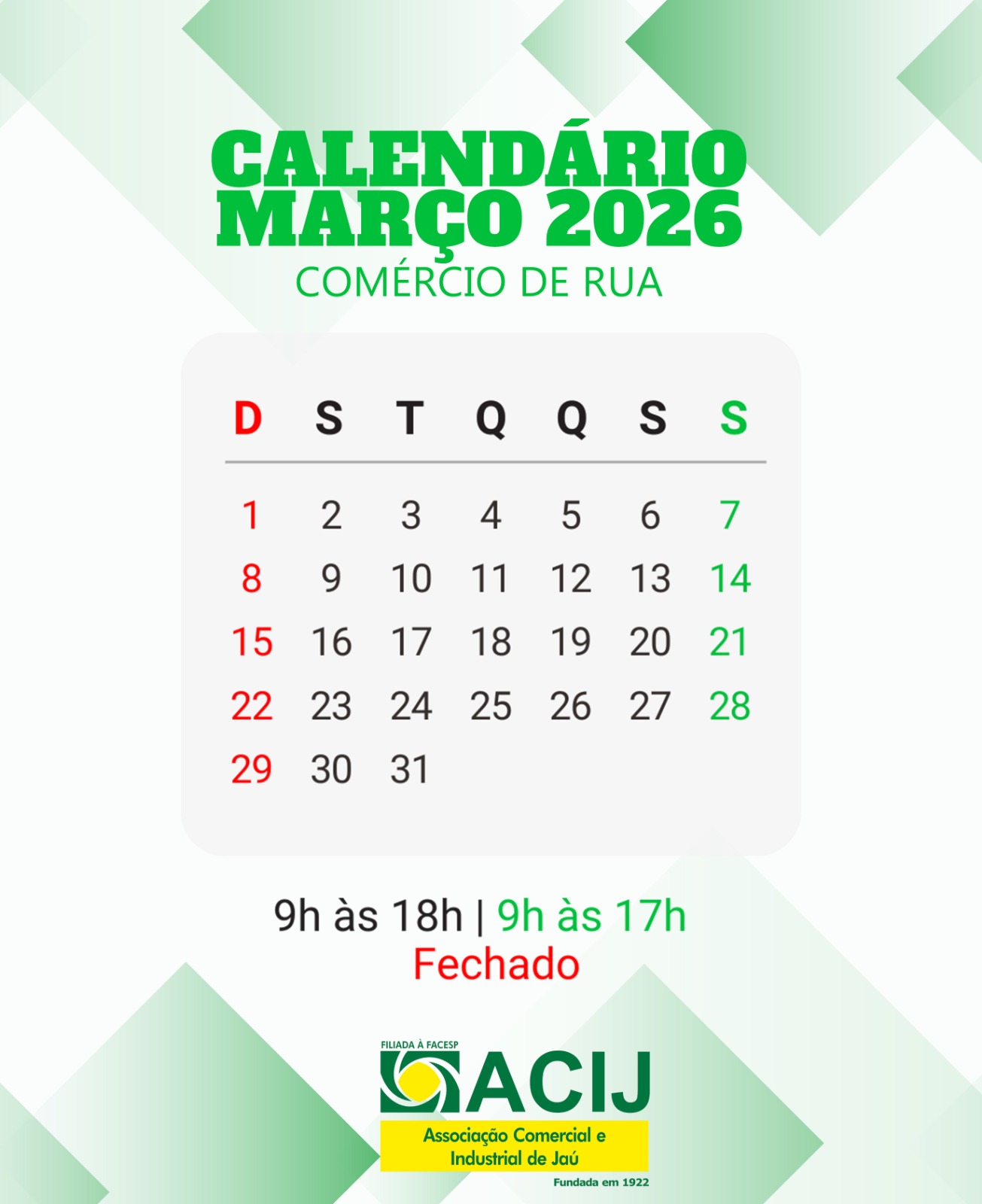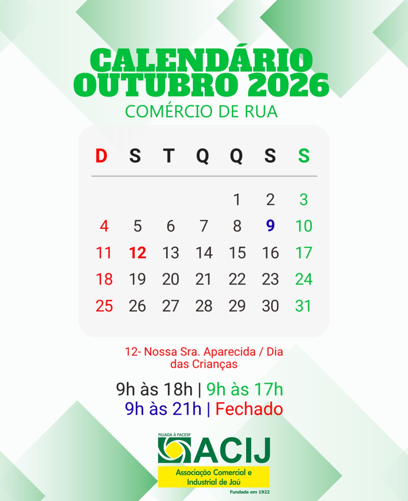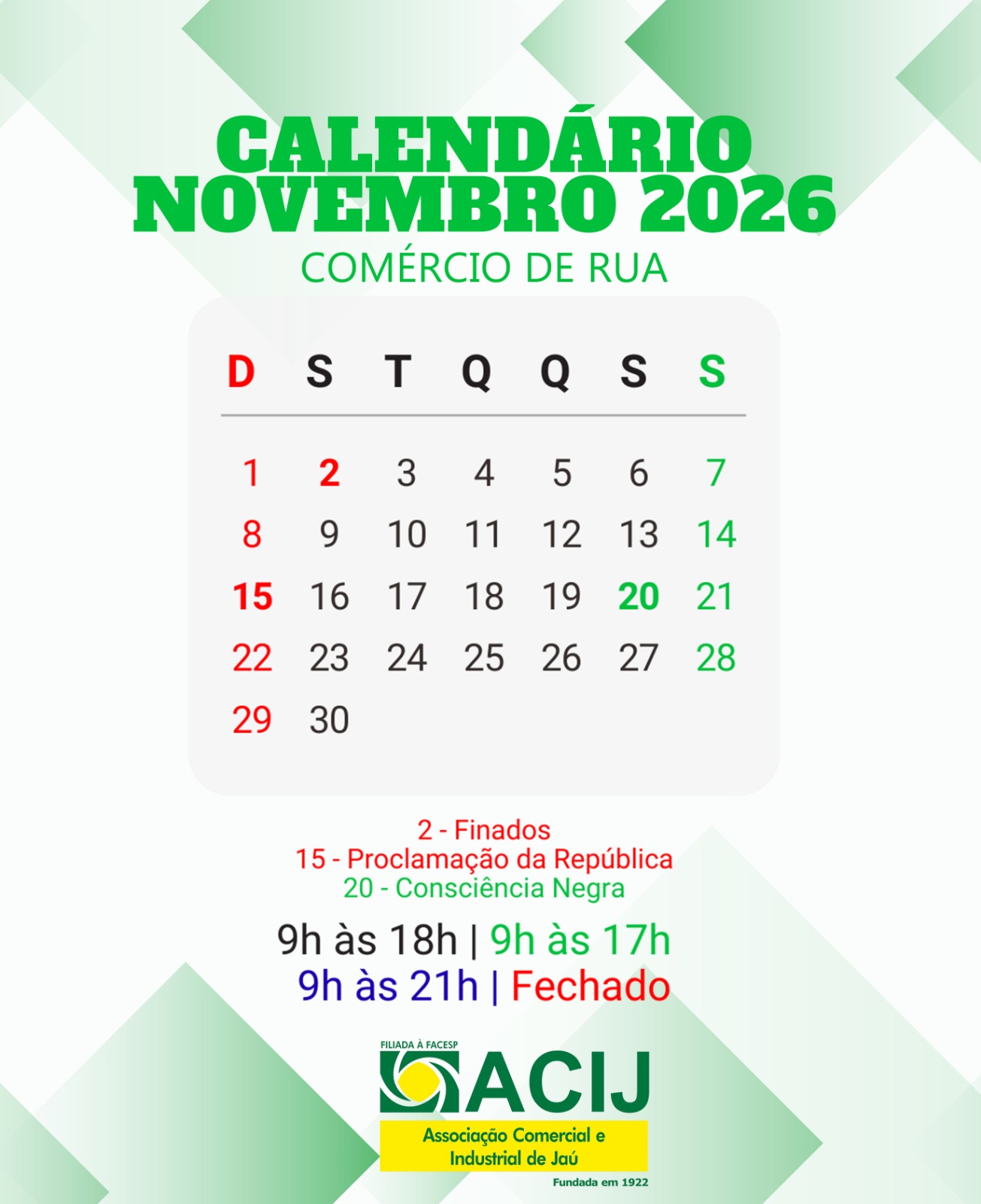 CALENDÁRIO DO COMÉRCIO 2026