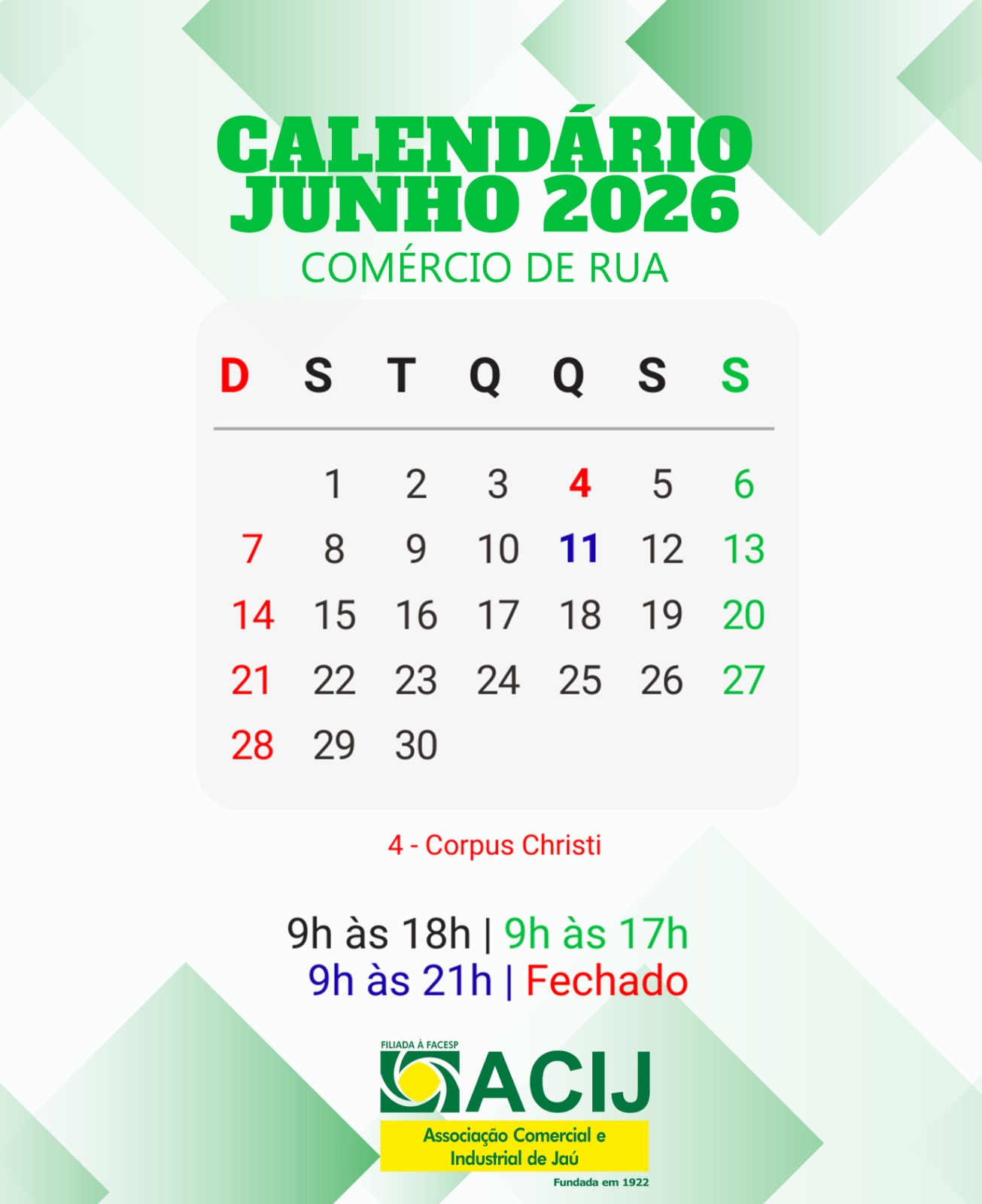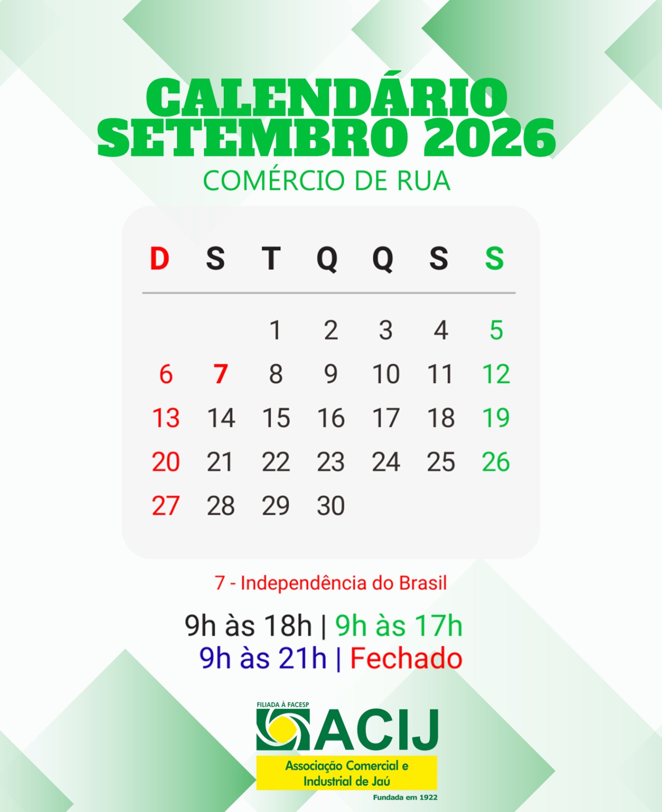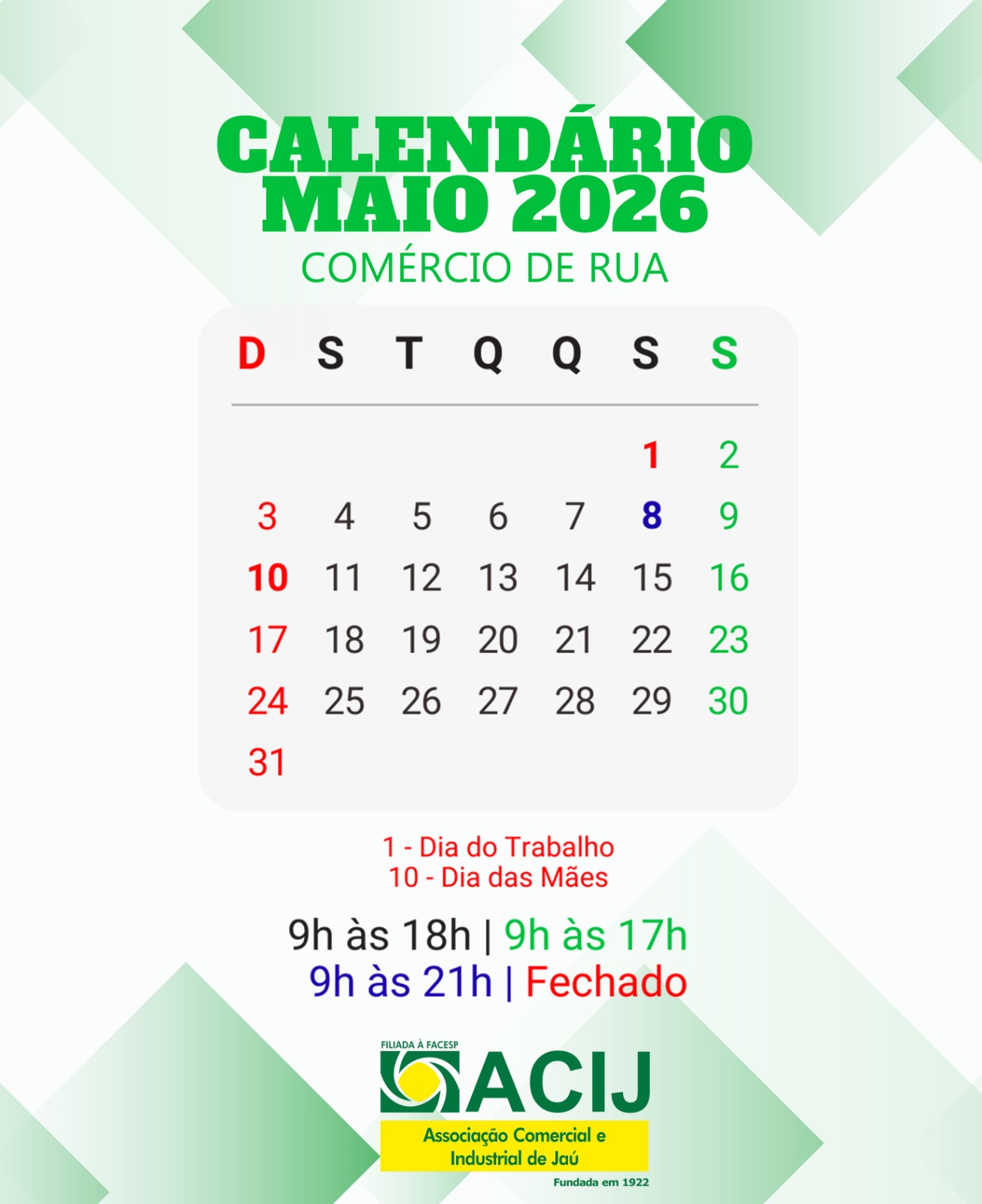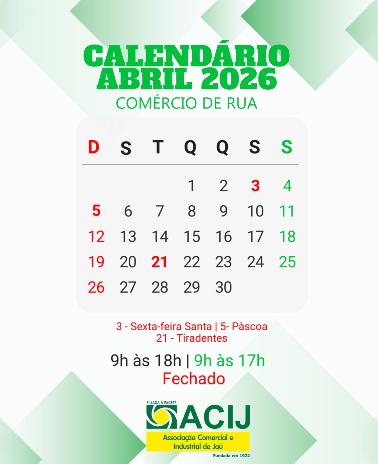 CALENDÁRIO DO COMÉRCIO 2026